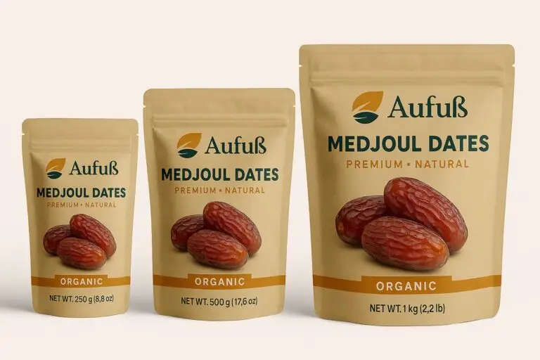 Medjool-Datteln bestehen zu 100 % aus reifen Datteln – ohne Zusatzstoffe, ohne Zuckerzusatz und ohne Konservierungsmittel. Ihre Süße entsteht ausschließlich durch den natürlichen Fruchtzucker, der sich während des Reifeprozesses an der Palme entwickelt.